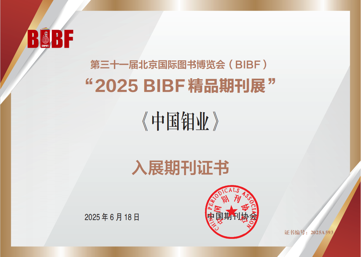 2025年6月18日至6月22日,第三十一届北京国际图书博览会(BIBF)在北京国家会议中心举办。在中国期刊协会举办的“2025 BIBF精品期刊展”中,《中国钼业》学术期刊成功入选,并在第三十一届北京国际图书博览会上展出。