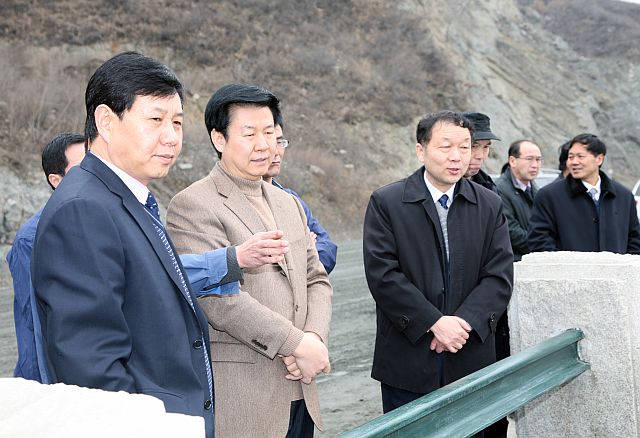 3月6日、7日,渭南市委书记庄长兴,市委常委、市委组织部部长安庆学等领导,在华县党政领导班子陪同下,莅临公司视察。庄长兴要求各级各部门要切实为驻渭的国有大中型企业发展提供优质服务,营造和谐环境,坚定不移地实施大企业引领战略,有力地支撑陕西东大门建设加快步伐。 时值三月,地处秦岭腹地的公司金堆城大本营,依旧漫山遍野白雪皑皑。6日晚间抵达公司的庄长兴书记一行,7日上午冒着严寒,踩着泥泞,先后深入公司露天采矿场、百花岭选矿厂磨浮车间、栗西尾矿库,查看生产工艺流程,了解生产经营情况。张继祥总经理、马保平书记全程陪同庄长兴一行视察。庄长兴对金钼集团“十一五”发展取得的巨大成就表示祝贺,并对公司在渭南市经济社会发展、特别是新型工业化进程中所发挥的重大支撑作用给予高度评价。在红旗沟排土场复垦现场,了解到去年种植在这里的玉米收成不错,庄长兴十分高兴,他鼓励公司继续做好环境保护和矿区生态恢复工作,在企业快速发展的同时,保持矿区山青水秀,环境优美。