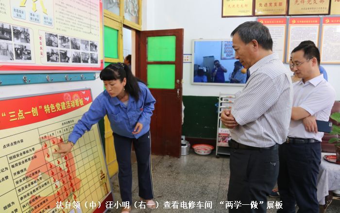 督导组深入走访查看了露天矿电机车党支部、机修厂电修车间党支部、百花岭选矿厂磨浮车间党支部和生活服务开发公司幼儿园党支部。通过听取汇报、查看资料,现场询问等方式对以上支部的“两学一做”学习教育开展情况进行了全面检查。