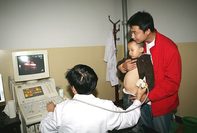 “三鹿奶粉事件”曝光后,公司职工总医院为婴幼儿进行免费检查