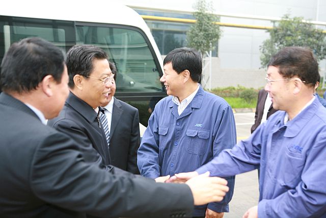 当天上午10时许,赵乐际一行抵达工业园。下车伊始,赵乐际等首先来到钼粉一车间。该车间主要设备是三条德国钼粉生产线,适合大批量生产,自动化程度高,主要生产各种规格的钼粉,产品销往日本、韩国、美国等地。赵乐际等在车间一边参观,一边听取相关人员的介绍和解说,详细了解钼粉生产工艺。 从钼粉一车间出来后,赵乐际等来到钼丝车间。该车间拥有国内最先进的德国进口精锻机Y250轧机,工艺设计为精锻机—Y370轧机—Y250轧机的精锻连轧工艺,主要生产钼电极、钼杆、钼丝等。赵乐际等在车间生产现场兴味盎然地参观了钼丝生产过程,并与现场工人亲切交谈。