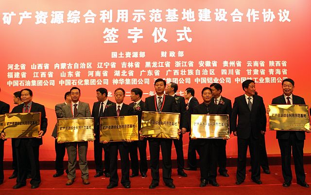 10月27日,国土资源部、财政部与21个省级人民政府及6个中央企业在北京签署矿产资源综合利用示范基地建设合作协议,正式启动油气、煤炭、黑色金属、有色金属、稀有稀土及贵金属、化工及非金属、铀矿等7大领域的首批40个示范基地建设。金钼股份被确定为首批矿产资源综合利用示范基地。 在当天召开的示范基地建设启动大会上,金钼集团总经理、金钼股份董事长张继祥代表金钼股份,亲手接过了中央财政部副部长张少春颁发的“矿产资源综合利用示范基地”荣誉牌。