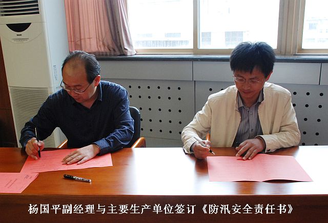 会上,公司副总经理杨国平与主要生产单位逐一签订了《防汛安全责任书》。在讲话中,杨国平副总经理就如何做好防汛工作提出要求,要求各单位从思想、行动和制度三方面做好保证,根据公司总体安排部署和防汛预案有序进行,确保安全度汛。 露天矿、卅亩地选矿厂、百花岭选厂等主要生产单位代表就本单位防汛工作做了汇报和表态发言。 会议最后,公司特邀渭南市防汛指挥部办公室总工程师卢亿农,华县防汛指挥部办公室主任、县水务局副局长刘奇玉,对与会人员进行了防汛知识培训。根据公司特殊的地理位置及汛期可能遇到的自然灾害,二位从防汛常识、防汛法规和如何进一步做好防汛工作等方面,通过事例进行了生动形象的讲解,令与会人员受益匪浅。