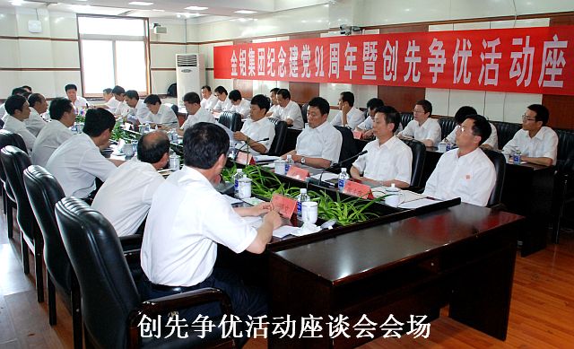 6月27日,公司举行创先争优活动座谈会和第二届感动钼都人物颁奖晚会,隆重庆祝建党91周年。 公司总经理、党委副书记张继祥主持庆祝建党91周年创先争优活动座谈会。 公司党委副书记、工会主席左可国宣读了表彰决定。金钼集团党委被陕西省委授予“先进基层党组织”称号。钼炉料产品部钼铁分厂党支部被渭南市委授予“先进基层党组织”称号。露天矿电机车等10个“先锋党支部”、百花岭选矿厂碎矿车间旋回破碎机岗等5个“党员先锋岗”、吕东峰等21名先锋共产党员及杨晓娟等5名“优秀党务工作者”受到公司表彰。 公司纪委书记刘海滨出席座谈会。公司露天矿、百花岭选矿厂、卅亩地选厂等20多个单位,在座谈会上就一年来党建重点及特色工作进行了交流发言。