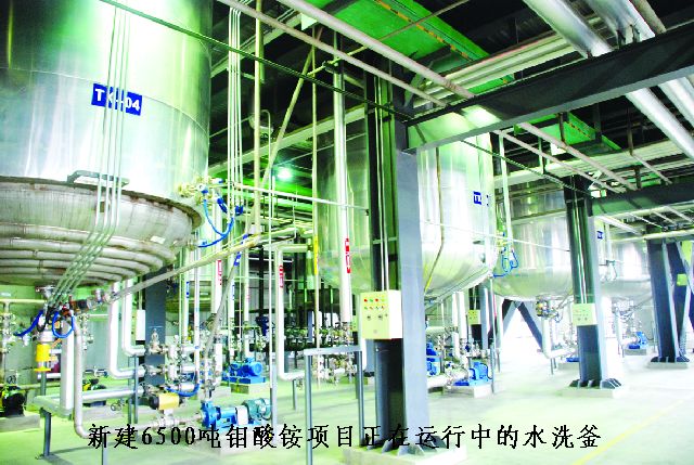 随着金钼集团“钼产业链”战略实施,为配合下游金属加工4200吨钼粉生产供应原料,也为适应日益壮大的未来市场需要,金钼集团2011年决策立项6500T钼酸铵扩产改造工程,该工程建设周期一年,自2011年末破土动工,2013年一季度单机调试,4-5月分别实现联动调试、带料负荷调试,二季度集中对暴露问题进行完善整改,到7月末具体正式投料、全线试车的试生产条件,这一目标按期实现为负荷试生产,进而达到完全建成投产创造了积极因素。 建设中公司上下克服任务时间紧、借鉴资料不全、技术难点多等一系列问题,采取定人排目标的措施,从四个方面积极有效推进:一是工序布局更加科学、合理,工序衔接紧密,促使操作更趋于简便,二是变更了原来上料系统的风送为螺旋梯升方式,设备效率大幅度提高,三是循环泵大多采用合资产品,同比降低投资5%。维护费用预计同比降低15%以上,四是环保投入加大,增加了氨气回收喷淋,废水废气排放基本达到零水平。