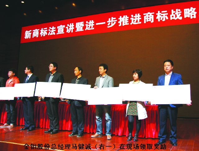 继此前“JDC”商标获中国驰名商标认定后,近日,金钼股份获得陕西省政府奖励100万元。   4月29日上午,由陕西省工商行政管理局组织的“新商标法宣讲暨进一步推进商标战略工作会议”在西安召开。会上表彰了我省2013年度被认定为中国驰名商标和陕西省著名商标的所有企业。金堆城钼业股份有限公司使用在钼炉料、钼化工、钼金属商品上的“JDC”商标因被国家工商行政管理总局认定为2013年度“中国驰名商标”,获得陕西省政府颁发的100万元奖励。金钼股份总经理马健诚参加了颁奖仪式。