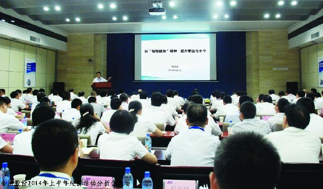 7月21日上午,金钼股份在西安钼金属工业园综合楼A座10楼报告厅召开2014年上半年经济活动分析会。金钼股份经营层和各单位、各部室负责人及相关人员共150余人参会。 上半年,面对市场持续疲软、行业竞争残酷等严峻形势,股份公司不断提升管理,降本增效,严格按照年初计划,对标市场调结构,自我加压不懈怠,确保了生产经营平稳高效运行。 会上,金钼股份经营层领导就上半年各自分管工作进展情况作了详细汇报,客观地分析了工作中存在的问题,并提出了下步改进措施。露天矿、钼炉料产品部和销售分公司分别就安全生产、对标管理和市场运作方面的主要工作成效以及先进经验和做法作了交流发言。