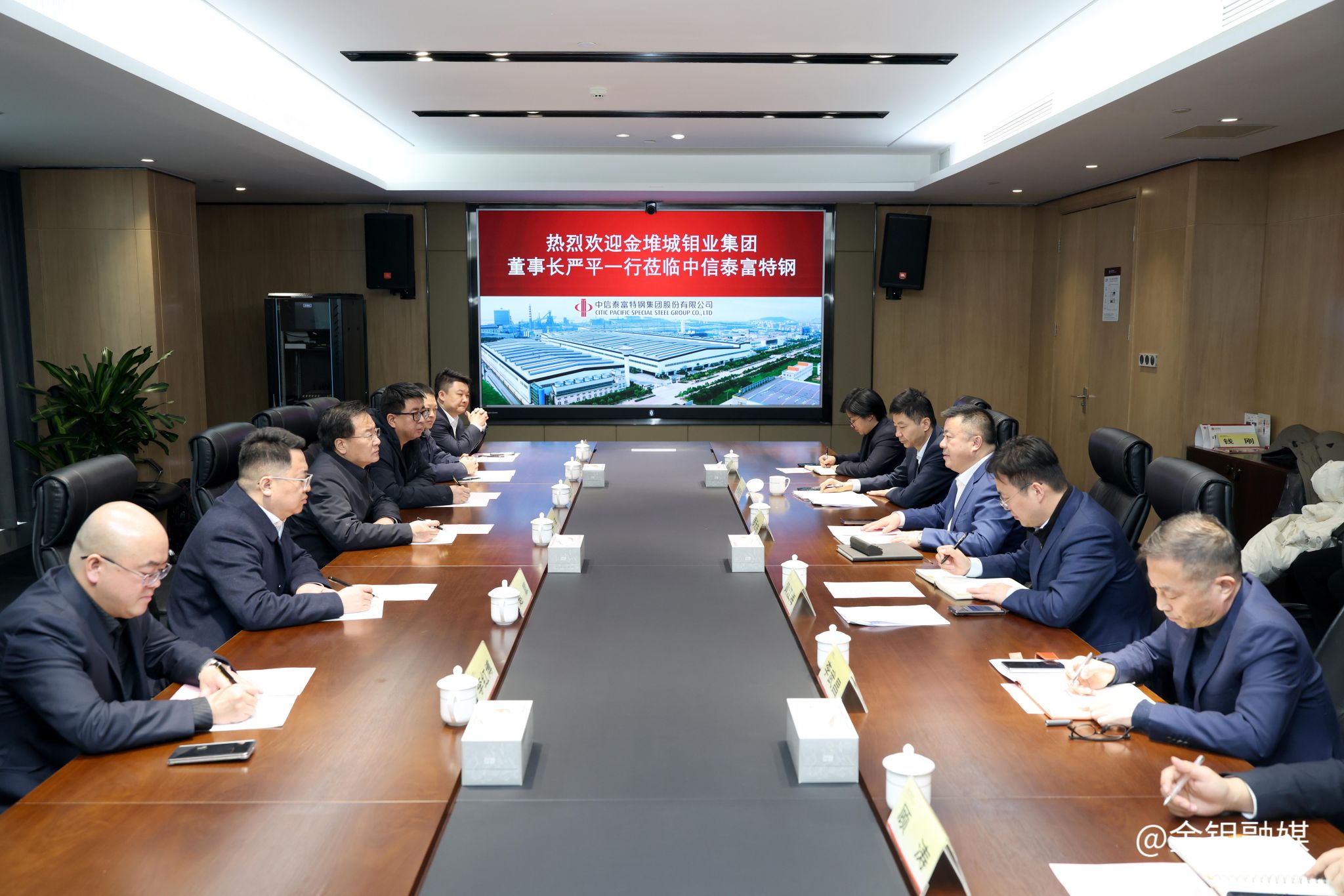 近日,金钼集团党委书记、董事长,金钼股份董事长严平带领营销团队到访中信泰富特钢集团,旨在进一步推动双方战略协同、增强供应链韧性,共同应对市场挑战,促进行业高质量发展。中信泰富特钢集团总裁罗元东、采购中心总经理黄江海等热情接待并参加交流。