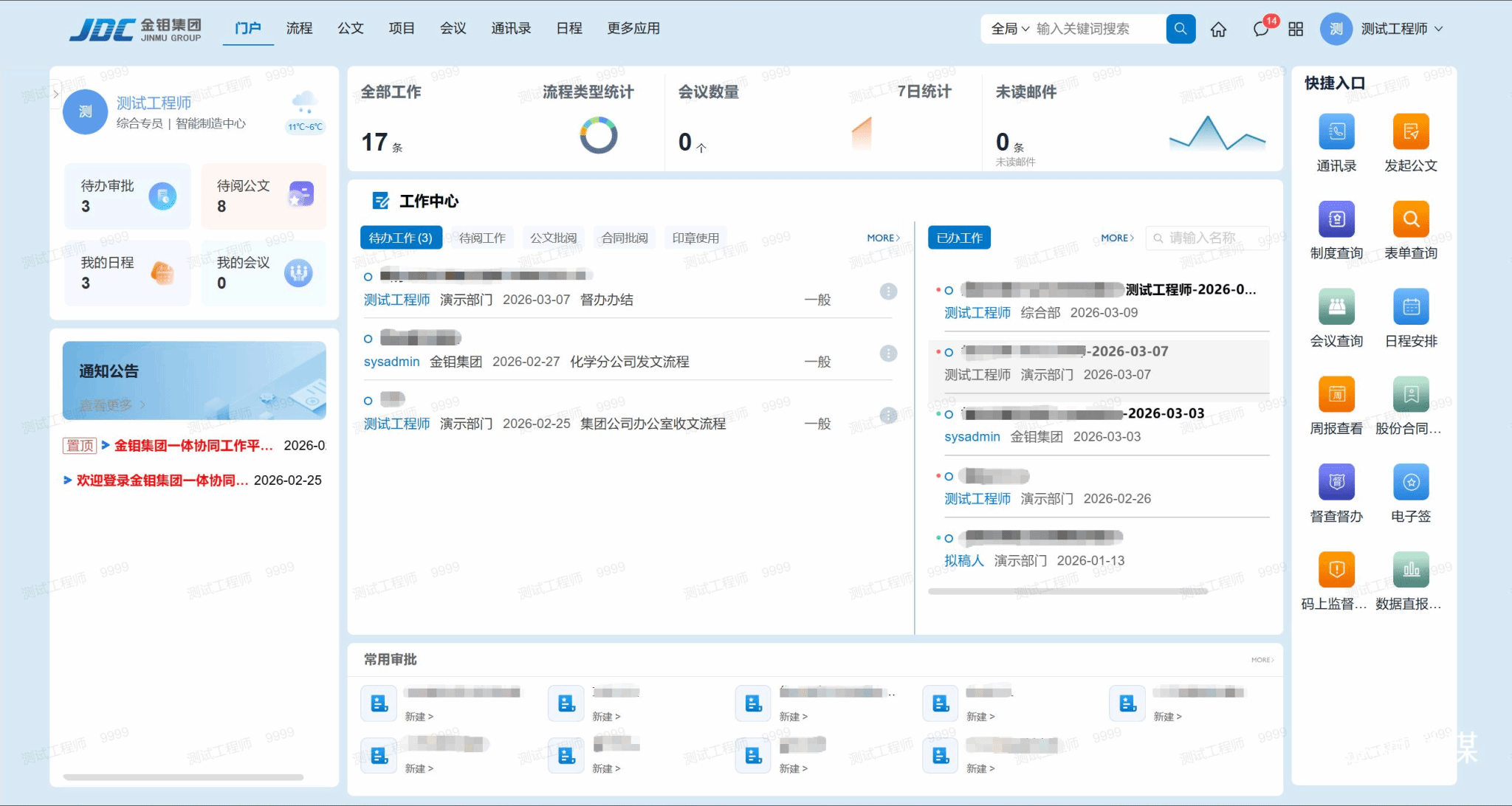 3月以来,金钼集团再添数字新名片——一体协同工作平台正式上线运行。作为公司“14321”数字化转型战略的重要落子,该平台以“统一入口、数据互通、业务协同、智能高效”为核心,将公文流转、事项审批、统一门户、电子签章、即时通讯等功能融于一体,为全集团搭建起高效协同的数字化办公新门户。平台的启用,是金钼集团数字化转型夯基垒台的坚实一步,也为公司“二次创业”征程注入了更加坚实的数字动能。