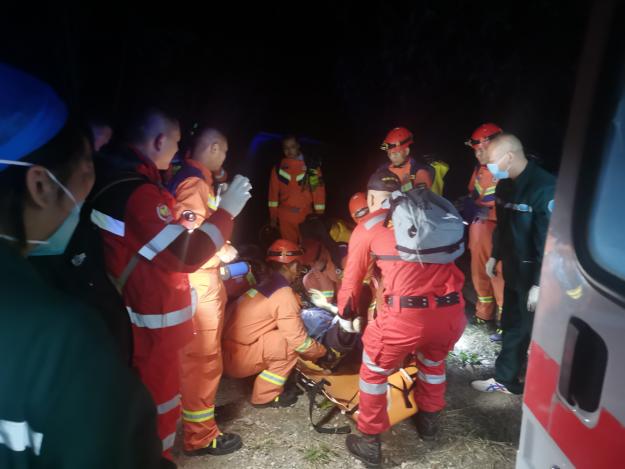 10月22日晚,长寿坡附近少华山有三人被困于半山腰悬崖绝壁上,活动受限无法下山,且有另一人在下山时不慎掉下悬崖受伤。正在家中休息的王智荣和党红育接到任务后,立即整理装备,第一时间赶到救援现场开展救援,在多方救援力量配合努力下,成功找到三名被困人员,并将伤者救出送往医院进行进一步治疗,圆满完成救援任务。